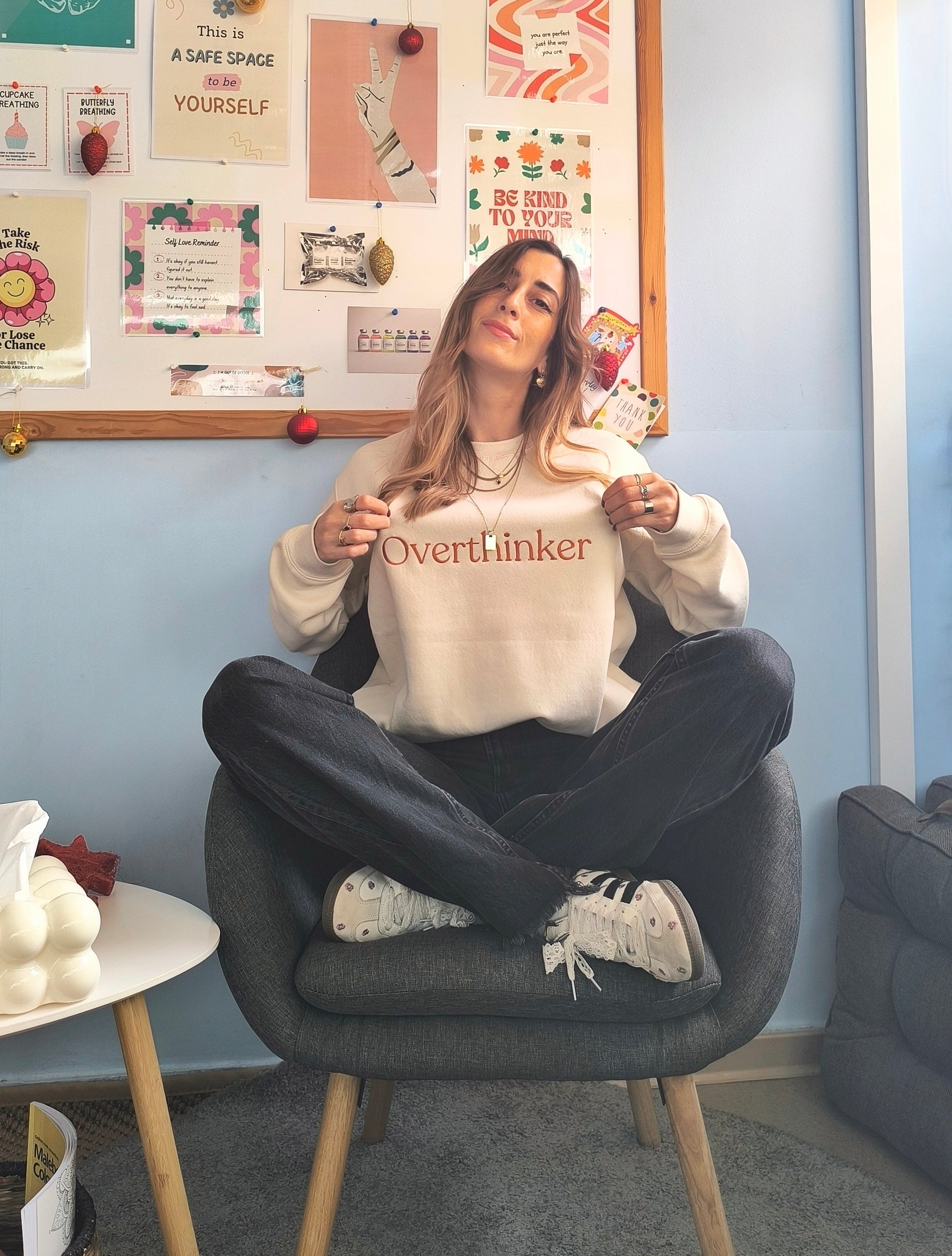 Τα κεντημένα “labels” στο στήθος -Overthinker, People Pleaser, Anxious, Tired - δεν είναι αδυναμίες.